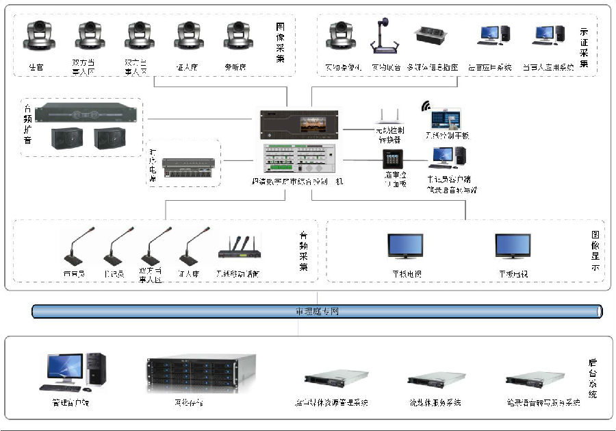 1. 实况采集,包含音频,视频信号,笔录信息。