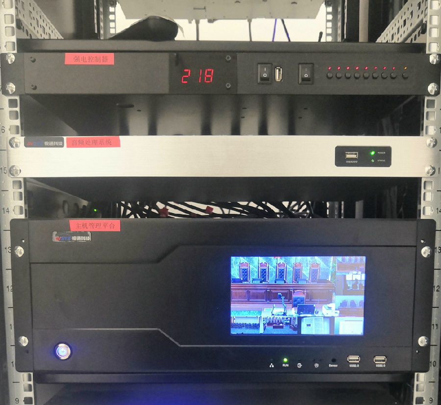 6. 庭审主机,高清数字媒体综合控制主机,集音频、视频、控制、录制、视频会议、交互MCU于一体。