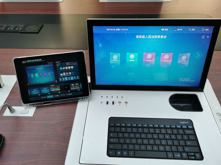 审委会会议室总面积约60平方米,最大可容纳50人参会,350vip8888科技根据审委会的日常工作需求进行准确功能定位,使用350vip8888科技(AVSYS)自主研发生产的UT综合一体机作为多媒体会议系统的核心设备,实现会议召开时高质量、高效率的语音、视频、控制、录制等功能,保证了整个系统中各设备之间、分系统之间的匹配和谐调工作。