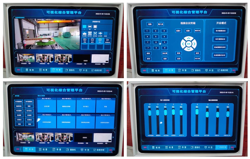 项目采用4台350vip8888科技UT2主机+4台IMC3.0,保证现场音视频指挥调度、画面切换、统一控制管理等应用。UT2具备六大功能合一:集成音频处理器、视频无缝混矩、可编程中控、录播编解码、视频会议终端、多方视频会议六大模块,产品具有安装简便,操作简单、维护容易等优点;控制界面采用可视化综合管理平台IMC3.0,实现统一管控、音视频调度等应用。